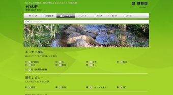 新装なった竹林軒では、落ち着いた「トップ」ページが、いつでもどのページでも簡単に移れるように……と配慮されました。リンクを十分整理し数多く設けることになりました。これまで風情などとはまったく無縁だった竹林軒の背景に寄り添うのは、竹林軒のイメージカラーの上品な緑。そして上に目をやると、そこには、