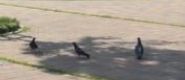 そういうこともあってか、いつも行く図書館は非常に混んでいた。タダでゆっくり涼める場所が少ないせいもあるのかわからないが、ともかく図書館はタダである。で、今日図書館に向かう途中、ハトが木陰に集まっている様子を見かけた。面白いので写真に撮ったが、カメラを構えた途端、ハトが大挙して僕のところに集まってきた。たぶん餌をやっている人がいるんだろう。おかげで、写真には3羽しか収まらなかった。写真で向こうに見えるのが図書館である。